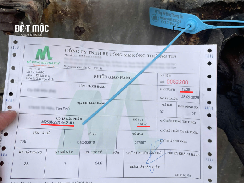 Trước khi nhận bê tông, gia chủ cần yêu cầu kiểm tra phiếu giao nhận. Các thông tin cần kiểm tra bao gồm:
