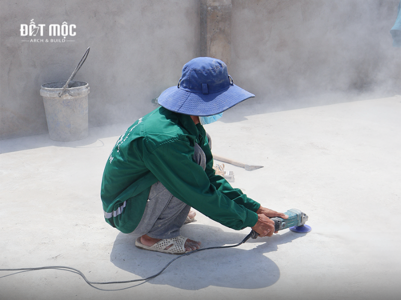 - Vệ sinh bề mặt: Sử dụng máy mài, chổi mài hoặc máy hút bụi để làm sạch sàn mái khỏi bụi bẩn, dầu mỡ và rêu phong.